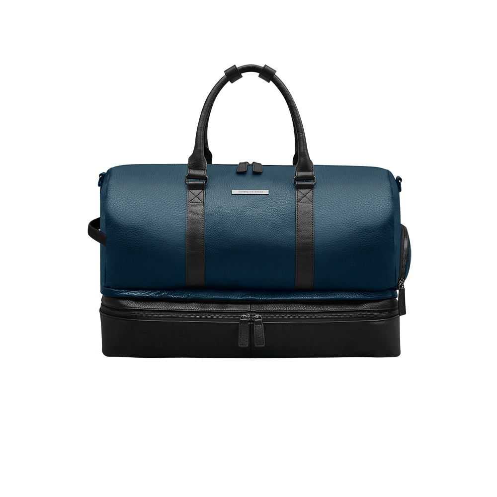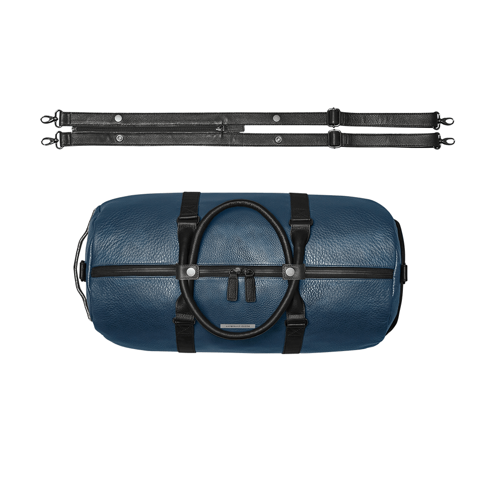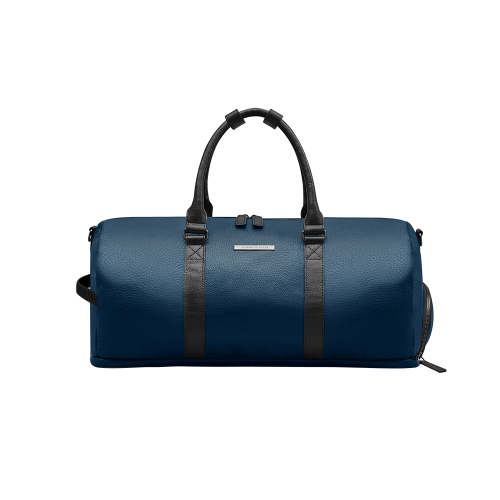 Looking for a stylish and sturdy travel bag? Look no further than Ampersand Goods' leather travel bag! Made of dark navy leather, this bag is perfect for your next vacation.